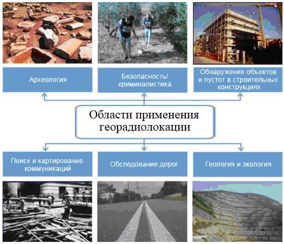 Георадиолокация (подповерхностное радиолокационное зондирование от англ. ground-penetrating radar, GPR) – это геофизический метод, который основан на использовании электромагнитных волн радиодиапазона для изучения строения подповерхностной среды в таких областях, как геология, строительство, сельское хозяйство, археология, криминалистика, безопасность и др. (рис. 1). Для этого используются электронные приборы, называемые георадарами (от англ. Geo – «Земля», radar – RAdio Detection And Ranging, то есть «радиообнаружение и определение дальности»).