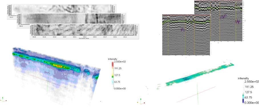 Рис. 10. Пример трехмерной визуализации по результатам георадарного зондирования [11]