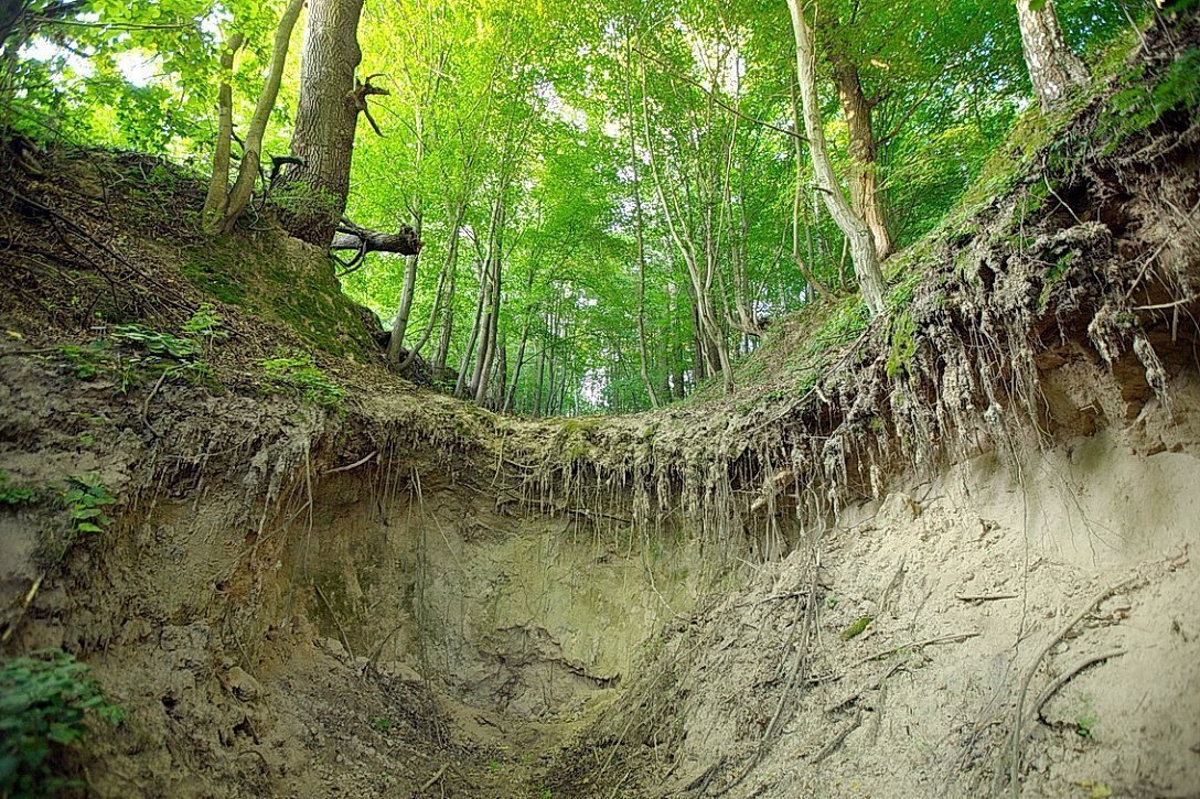 Рис. 5. Вершина оврага в массиве лёссовых грунтов в г. Мозырь Гомельской области [31]