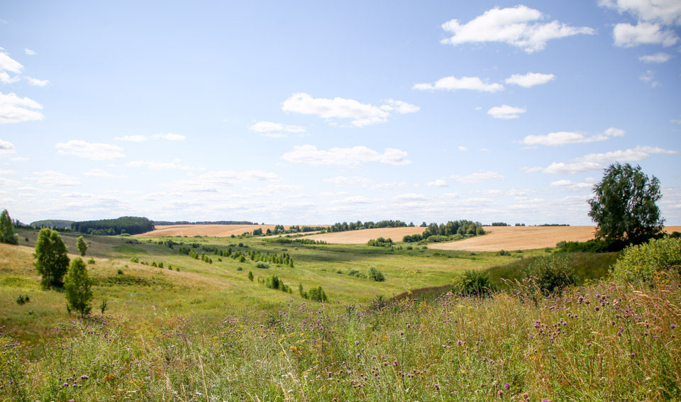 Фитоценозы первого типа луговые (см. рис. 8), занимают повышенные формы рельефа междуречий (плоские равнины, верхние и нижние части склонов), а также неглубокие плоские понижения на равнинах, характеризуются небольшим площадным распространением и мелкоконтурностью, часто они вкраплены среди пахотных угодий, местами закустарены берёзой, осиной и ольхой серой [28].