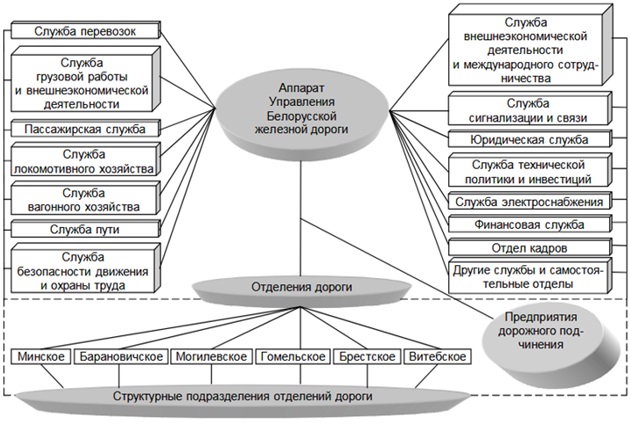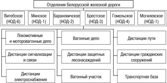 Рис. 3. Структура отделений Белорусской железной дороги [16]