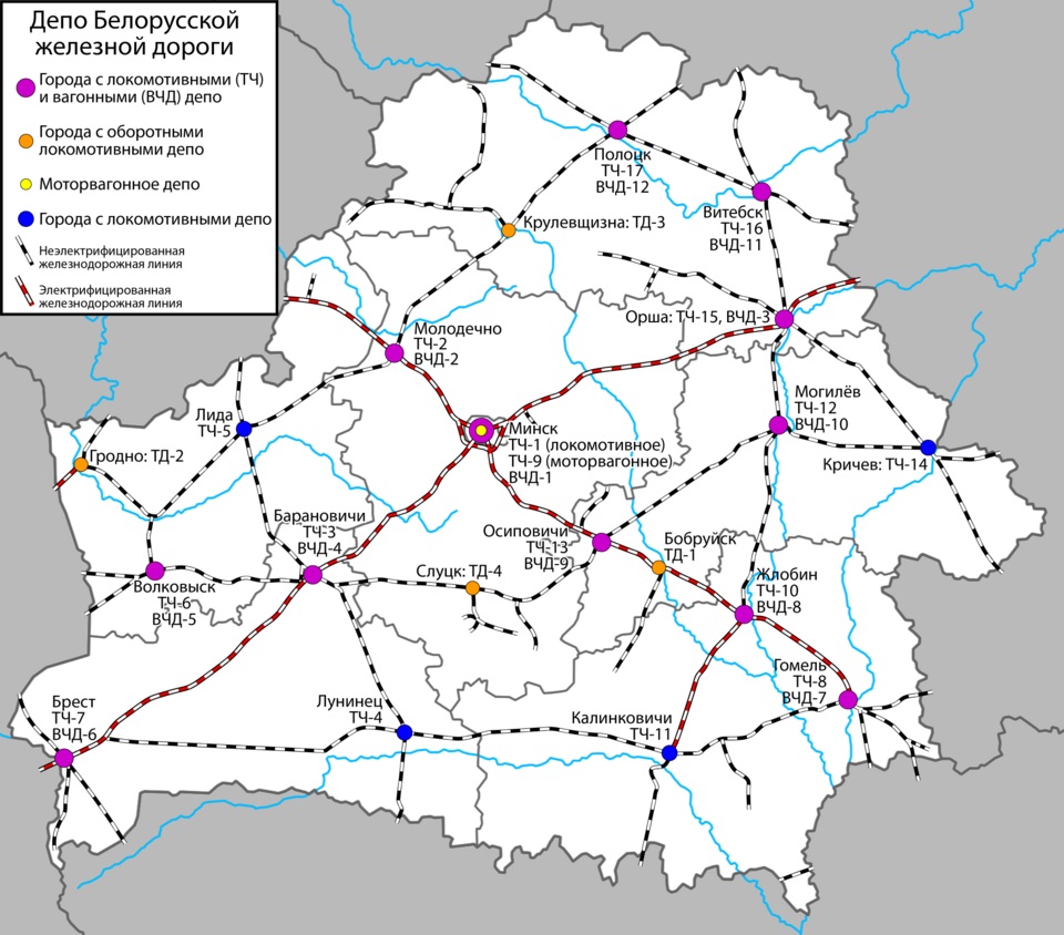 Рис. 4. Локомотивные и вагонные депо Белорусской железной дороги [19]
