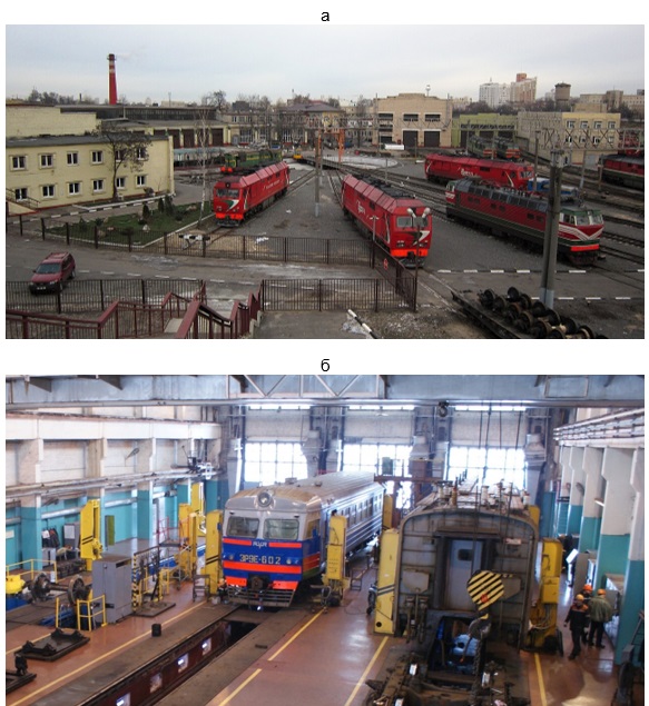 Рис. 5. Локомотивное депо ТЧ-1 Минск-Сортировочный (а) и моторвагонное депо Минск (б) [17]