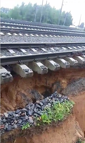 Рис. 6. Размыв железнодорожного полотна под Оршей 28 июля 2023 г. (источник фото: https://www.instagram.com/p/CvPCP1WO1h6/)