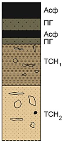 Рис. 7. Морфологическое строение экраноземов, развитых в промышленных зонах (Асф – асфальтобетон, ПГ – песчано-гравийная подушка; ТСН – техногенный перемешанный грунт) [28]