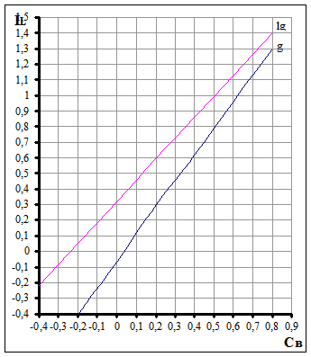 Рис. 3. График зависимости показателя текучести и консистенции для моренных (g) и озерно-ледниковых (lg) отложений территории Санкт-Петербурга (по данным «Трест ГРИИ»).