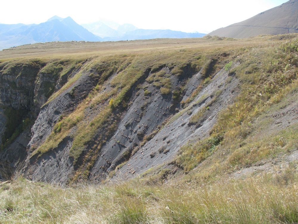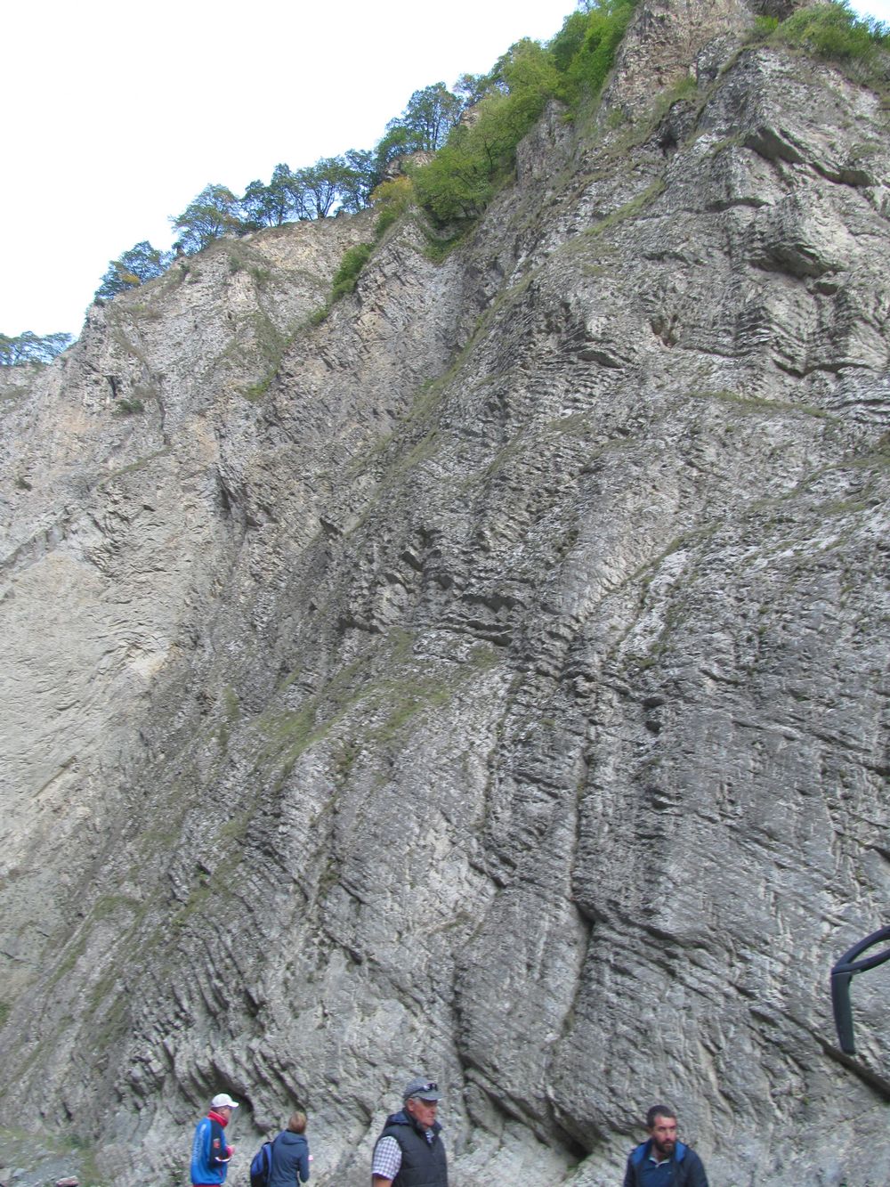 Рис. 22. Скалы в Кармадонском ущелье, изборожденные сошедшим ледником Колка в сентябре 2002 года (фото автора, сентябрь 2020 г.)