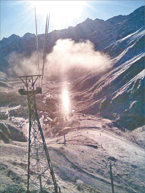 Но опасность не только в возможных его извержениях и связанных с ними лахарах, селях и наводнениях. Он опасен даже в состоянии «спячки». Например, вспомним катастрофический сход ледника Колка с северного склона Казбек-Джимарайского массива по ущелью реки Геналдон 20 сентября 2002 года (рис. 19–22). Тогда почти моментально сорвавшаяся масса льда, снега и камней заполнила Кармадонское ущелье в узких местах на высоту до 450 м и погубила 128 человек, в том числе съемочную группу фильма «Связной» и его режиссера Сергея Бодрова-младшего (причем доподлинно известно, что подобные трагедии происходили там и в прошлые столетия).