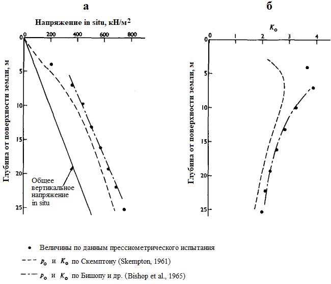 Для прессиометрических тестов авторами работы [2] использовалось эффективное горизонтальное напряжение in situ, равное Kо(γsz–u), в то время как для штамповых испытаний применялось значение ½(1+Kо)(γsz–u), находящееся посередине между горизонтальным и вертикальным эффективными напряжениями.