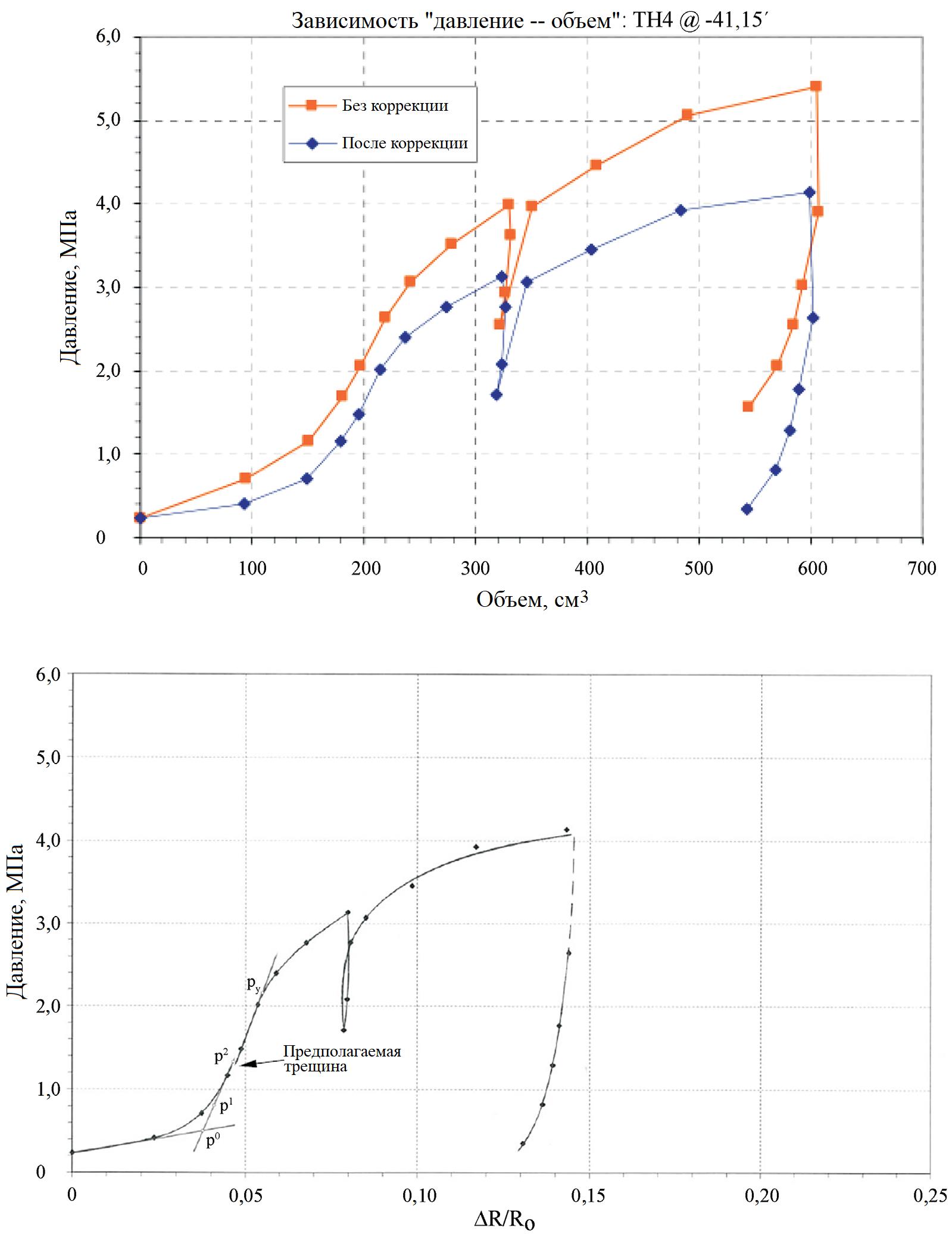 Прессиометры продолжают представлять интерес для исследователей. Так, было представлено исследование прессиометрических испытаний в слабых скальных породах с помощью однокамерного прессиометра кембриджского типа и с использованием компьютерного моделирования на основе репрезентативных комплексных геомеханических (конститутивных) моделей скальных грунтов (Dafni, 2013). На рисунке 12 сопоставлены результаты измерений и кривая, полученная ранее (Yang, Zou, 2011) с использованием модели Хёка – Брауна (Hoek-Brown).