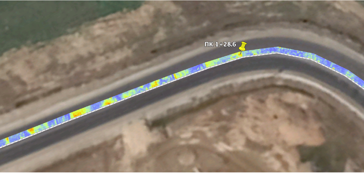 Для удобства последующего детального анализа полученные данные были наложены на спутниковые снимки открытой геоинформационной системы. Результаты с наложенными данными и координатами приемника RTK GNSS дополнительно представлены в формате .kmz (разметка на основе XML для представления трёхмерных геопространственных данных в ГИС).