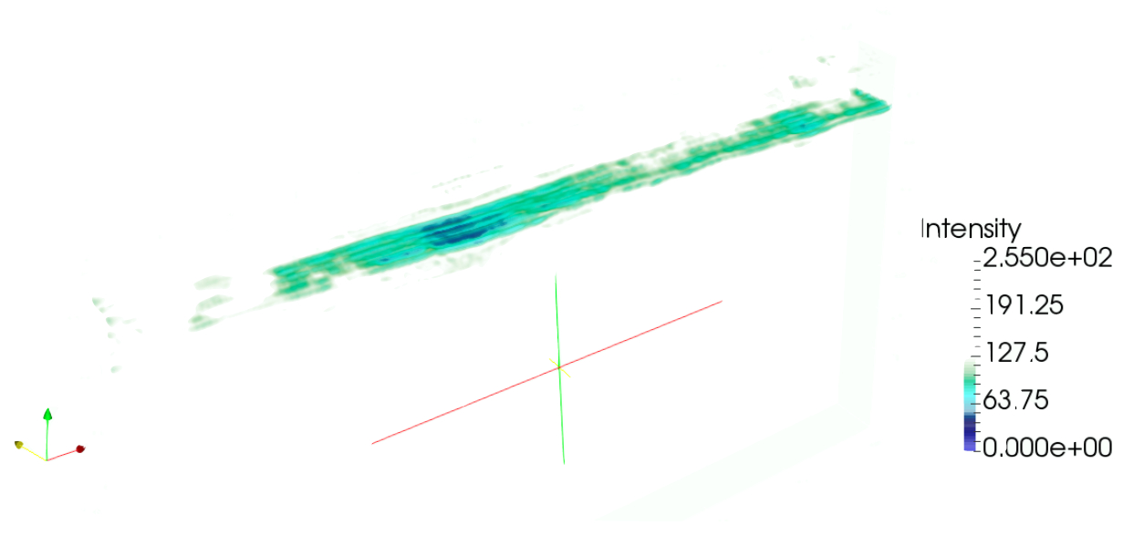 Рис. 10. Визуализация результата сканирования в месте расположения линейных неоднородностей
