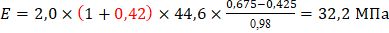 Разница заключается в дополнительном множителе (выделен красным в формуле (2) и значении Кr. В результате по расчету получаются завышенные значения модуля деформации Е.