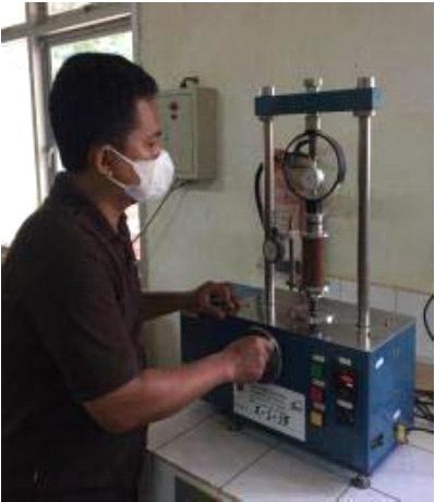 Рис. 6. Испытание образца грунта на одноосное сжатие
