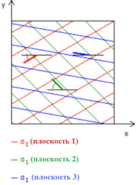 Рис. Пример с тремя разными углами падения, определяемыми параметром α1