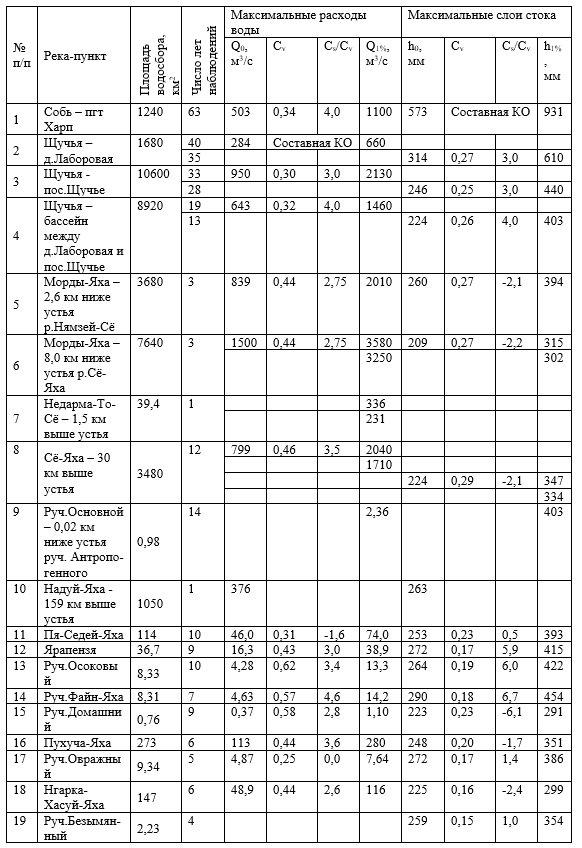 Расчет максимального стока рек и малых водотоков полуострова Ямал