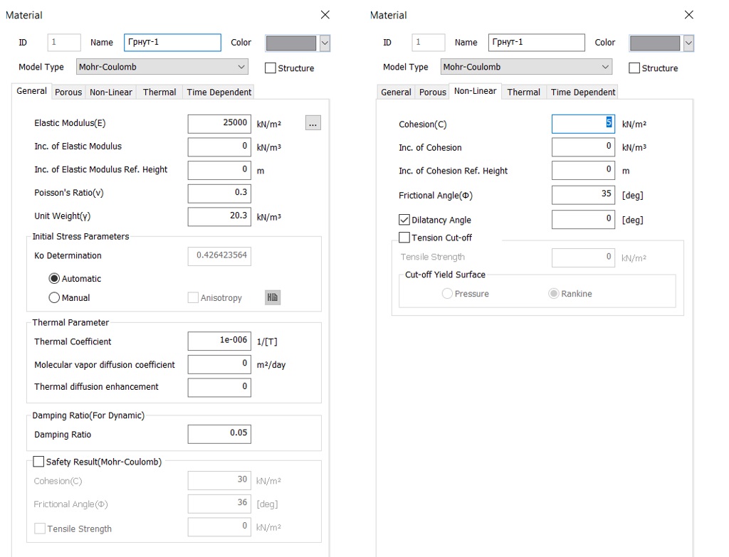 Модель MC допустимо использовать, если грунт в модели близок к условиям компрессионного сжатия, но при компрессионном сжатии в модели MC модуль деформации — это постоянная величина, по этой причине для задач расчета осадки рекомендуется применять более совершенные модели материалов: «Soft Soil (SS)», HS, HSS, а при расчете оценки влияния от откопки: HS, HSS. HSS показывает лучшую сходимость с мониторингом, также HSS очень точно определяет зону влияния от нового строительства относительно других методов. По этим причинам предпочтительнее всего использовать HSS, но данная модель грунта требует больше исходных данных и затрат на изыскания соответственно.
