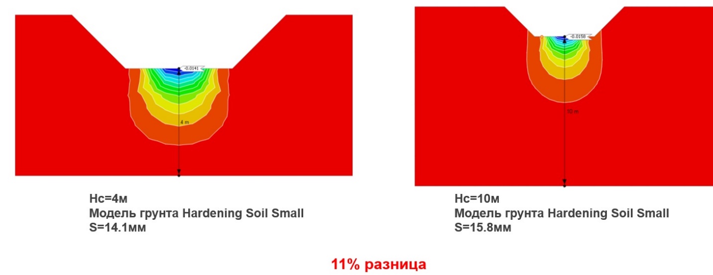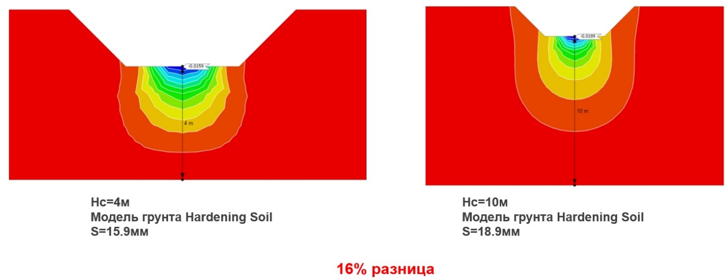 Рис. 4. Оценка влияния сжимаемой толщи на результат осадки для HS