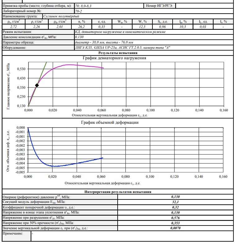 Рис. 22. Пример испытания грунта методом трехосного сжатия с определением E50. Исполнитель: Мостдоргеотрест