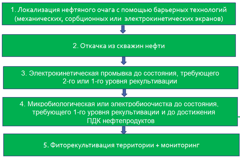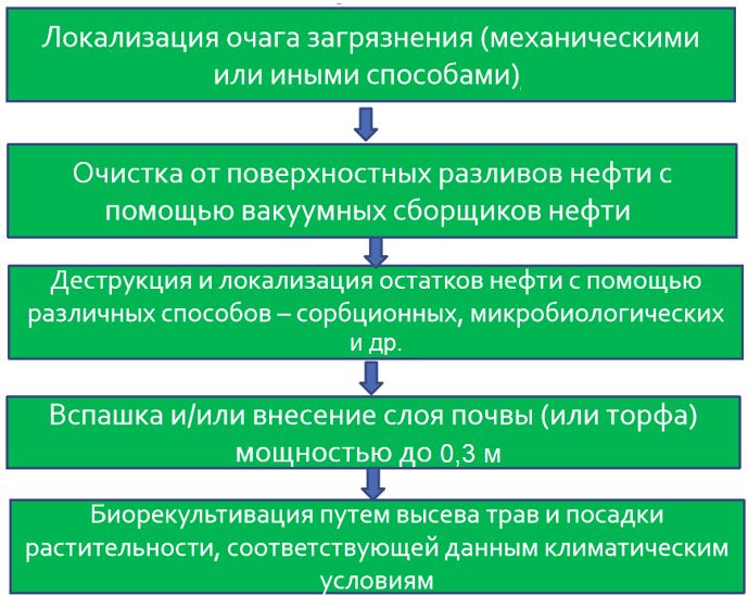 Рис. 1. Рациональная схема ликвидации поверхностных нефтяных загрязнений вне криолитозоны [4]