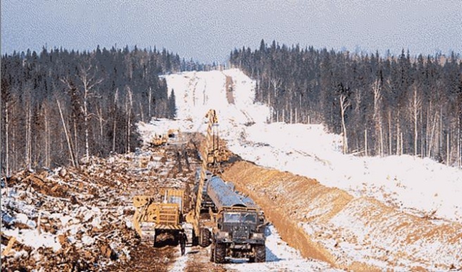 Рис. 7. Прокладка подземной линии магистрального газопровода в Сибири
