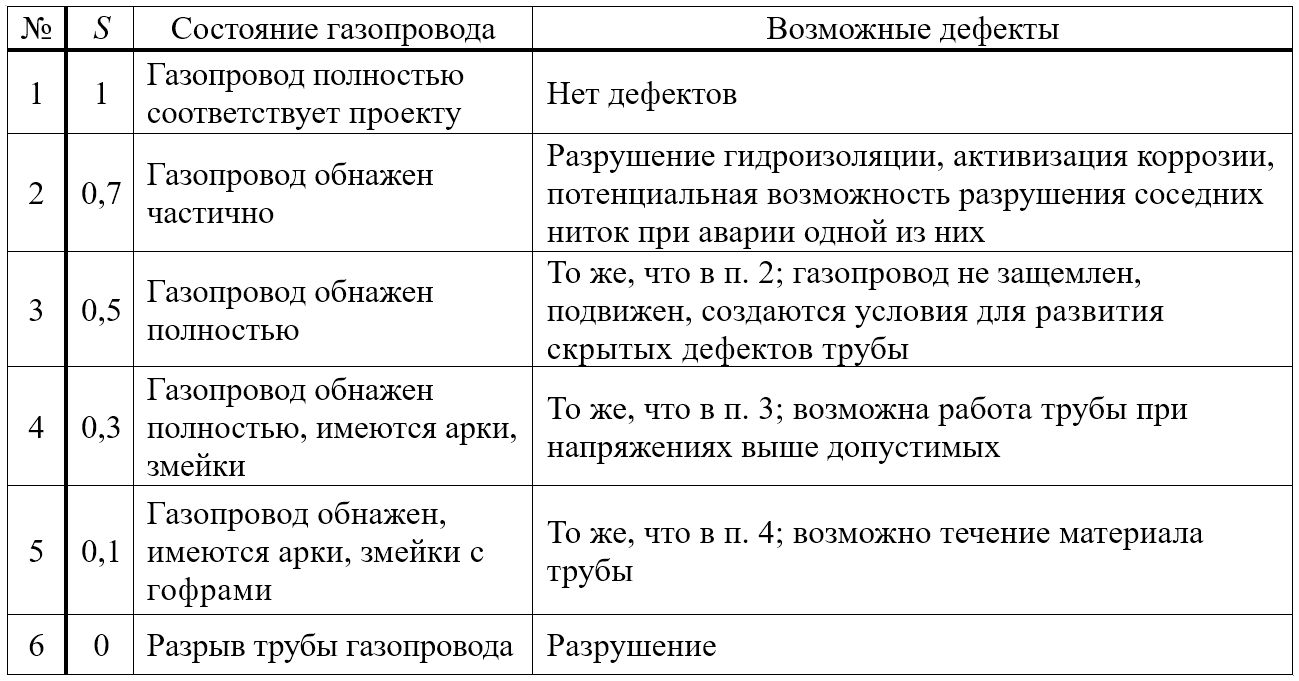 Таблица 2. Классификация состояния подземных трубопроводов по показателю стабильности S [3]
