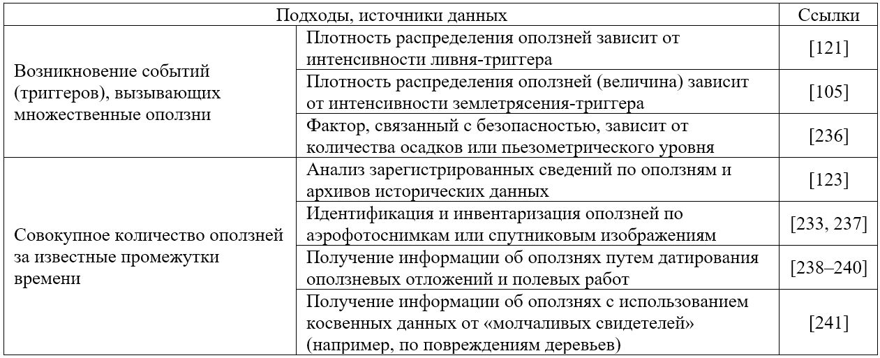 Теперь опишем подходы, традиционно применяемые для оценки вероятности возникновения оползней.