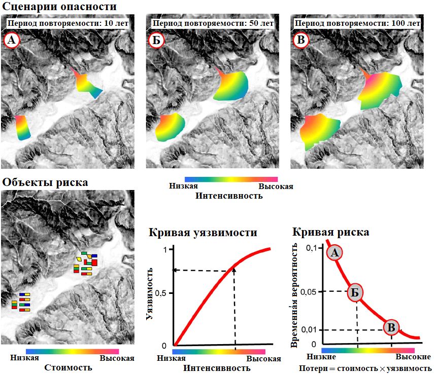 Помимо прямого риска (например, физической потери имущества или гибели людей) необходимо также учитывать косвенный риск (например, нарушение экономической деятельности, эвакуацию населения и т.д.), но это выходит за рамки данной статьи, в которой основное внимание уделяется прямым потерям.