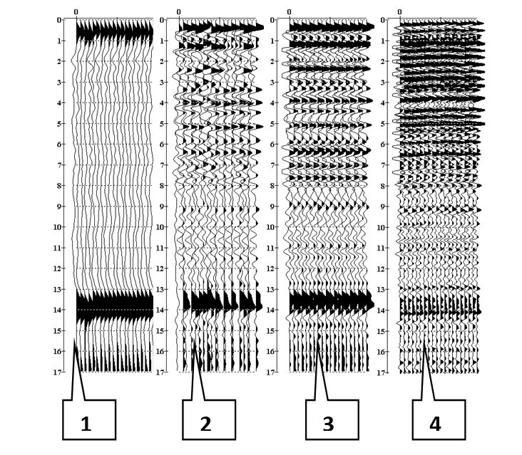 Возможно, что подобная ситуация создалась в связи с тем, в нормативных документах нет прямых рекомендаций по применению инструментальных методов при контроле качества железобетонных, грунтоцементных и других видов свай. В частности, при проведении исследовании свай приходится указывать, что работы выполняются в соответствии с «Технологическим регламентом по применению неразрушающего экспресс-контроля сплошности свай методом «СОНИК»» (ОАО ЦНИИС, 2002) или ASTM D5882-16 «Standard Test Method for Low Strain Impact Integrity Testing of Deep Foundations. Несомненно, что для применяемых инструментальных методов требуются регламентирующие нормативные документы. Таковые имеются в полном объеме для ультразвуковых методов. Для акустических и георадарных методов необходимы соответствующие документы, учитывающие современный опыт и имеющиеся отечественные разработки. К примеру, использование при исследовании жб свай акустического метода с многочастотным возбуждением сигнала (Капустин, 2011) и численных методов моделирования волнового поля в свае, позволяет решать более широкий круг задач, чем используемый в отечественной и зарубежной практике метод «СОНИК» (рис.1).