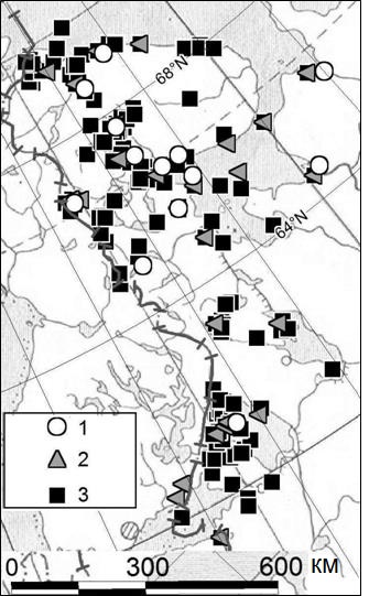 В результате для российской части Фенноскандинавского щита к 15 землетрясениям, произошедшим за «историческое» время (с XVII века по 1974 г.), да и то только для северной части региона, которые вошли в упомянутый выше базовый каталог [12] для готовившейся карты общего сейсмического районирования ОСР-2012, к 2011 году было добавлено еще 21 сильное сейсмическое событие [9], а к 2015 году их число возросло до 173 [10]. Причем львиная доля землетрясений была добавлена не за счет регистрации новых событий после 1974 года, а благодаря выявлению более ранних, в том числе древних землетрясений (рис. 6).
