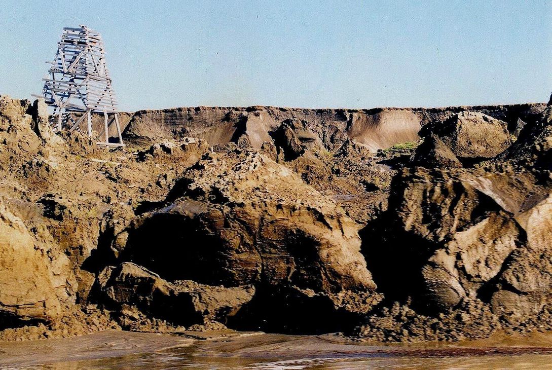 42. В отношении таяния мерзлоты, отмечают специалисты из ИМЗ, криолитозона обладает достаточной устойчивостью и на протяжении нескольких десятилетий катастрофические изменения её температуры не зафиксированы. В то же время, отрицать таяние ее верхних горизонтов неразумно, но именно ими процесс и ограничивается. Наиболее значительные последствия наблюдаются в береговой полосе тундры, где происходит таяние особо льдистых пород с содержанием льда до 90% (рис.1). Часто обрушение льдистых пород сопровождается развалом навигационных знаков (рис.2).