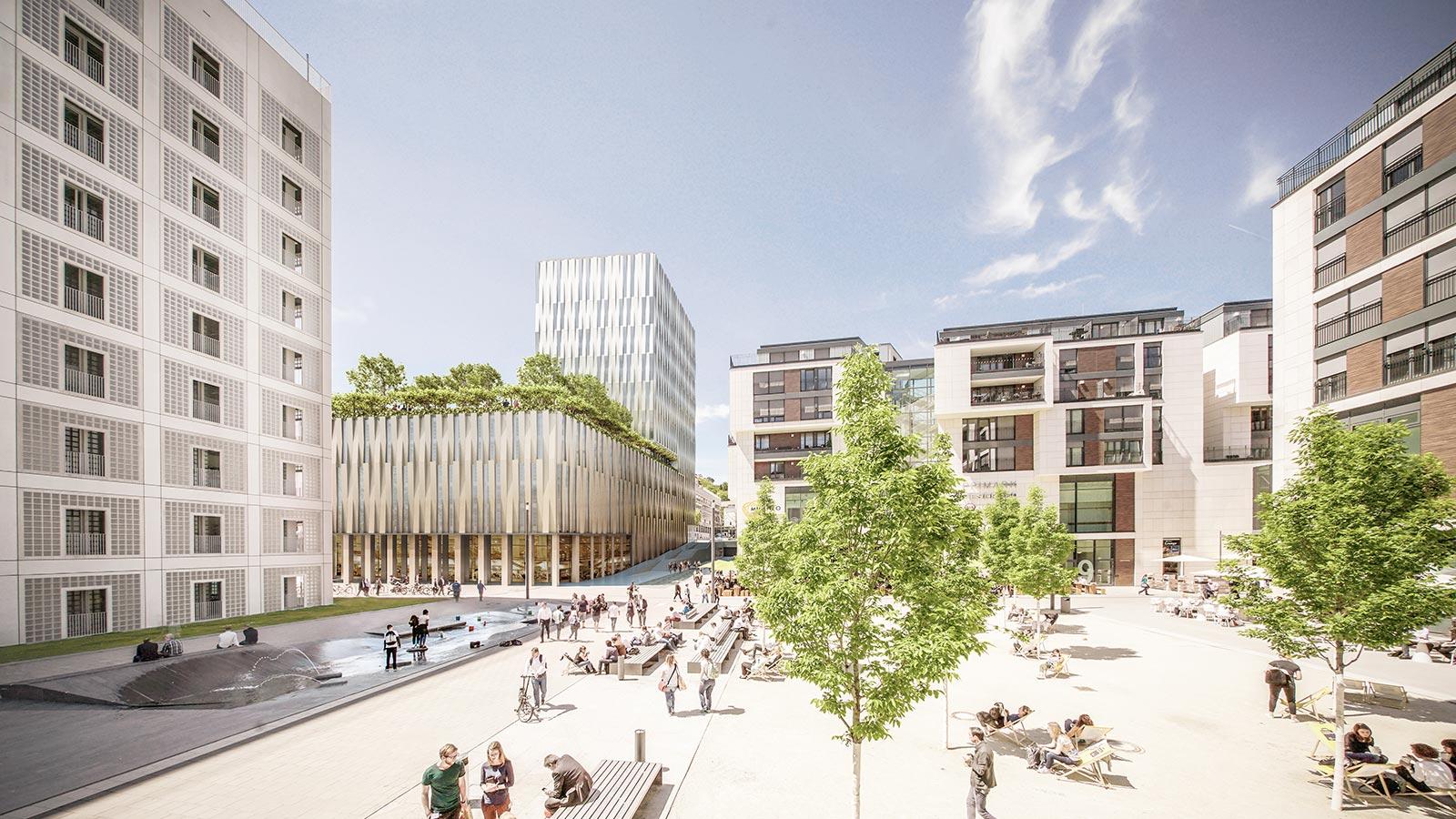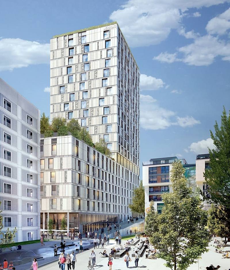 Как уже было отмечено, на юго-западе Миланской площади в пределах «Европейского квартала» Штутгарта в 2021 году появился многофункциональный высотный комплекс. В него вошли два отеля (Adina и Premier Inn) на 260 номеров и 169 апартаментов, торговые залы, ресторан, кафе, бар, бистро, бассейн, сауна, тренажерный зал, СПА-салоны и подземный паркинг на 76 парковочных мест. Общая площадь помещений составила почти 30 тыс. кв. м.
