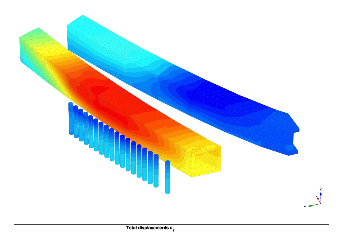 Но владелец указанных тоннелей не сразу дал разрешение на выемку грунта только с одной стороны от них, поскольку это могло вызвать асимметричное горизонтальное давление на эти подземные сооружения. Чтобы преодолеть указанную проблему, да еще с минимальным влиянием на рентабельность строительства, специалисты Ed. Züblin AG использовали конечноэлементный программный комплекс PLAXIS 3D в целях тщательного геотехнического моделирования этапов строительства, анализа сложных деформаций и выбора оптимальных проектных решений, а также для управления процессом строительства (чтобы на практике не допустить превышения допустимых смещений).