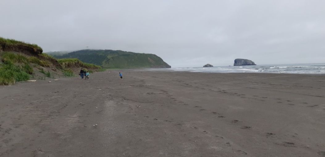 Авачинский залив – часть акватории Тихого океана, примыкающая к Авачинской бухте (не надо их путать), где расположен Петропавловск-Камчатский. Ее территория на север от Авачинской бухты до р. Налычево – самое популярное туристическое место на Камчатке. Здесь же известный Халактырский пляж, где расположена база серфингистов, прославившихся благодаря фильму Дудя. Соседняя бухта – более дикая. В августе 2020 года мы с детьми гуляли и купались на одном из пляжей этого берега – самой его южной части, бухте около озера Приливного, около мыса Вертикального: чистая и холодная вода, черный песок. Не было никаких даже признаков страшилок, о которых все заговорили в сентябре.