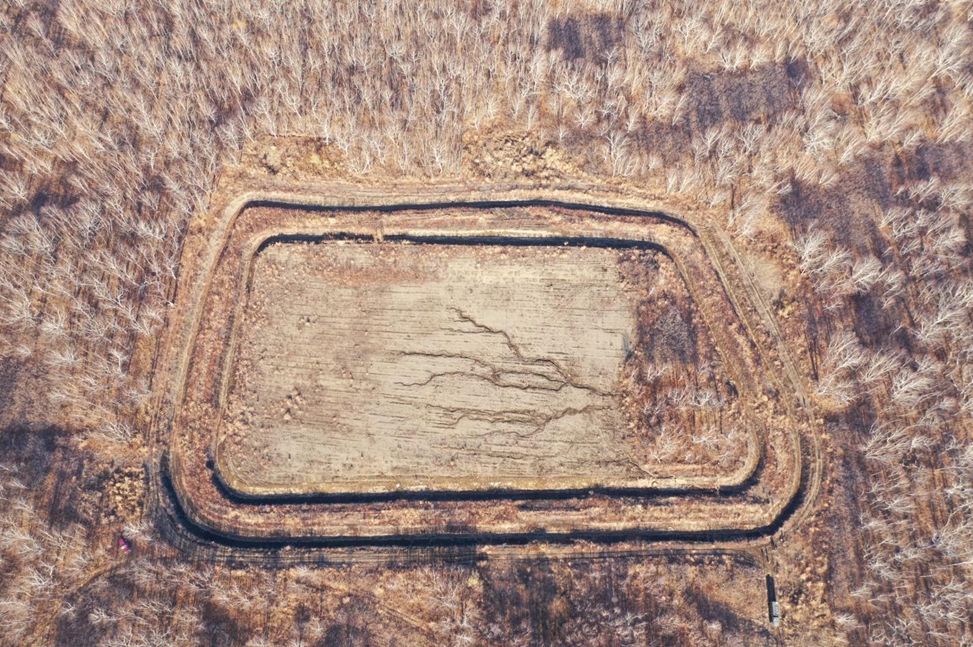 Рис. 4. Козельский полигон ядохимикатов, расположенный в лесном массиве, не имеющий каких-либо путей соединения с русловой сетью (фотография 12 октября 2020 года)