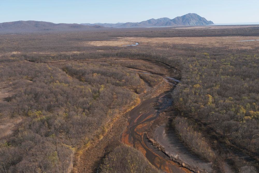 Рекогносцировочной фотосъемкой наших дронов были охвачены несколько десятков километров нижнего течения р. Налычева, руч. Ржавый, р. Мутнушка, руч. Козельский. Было обнаружено, что отсутствуют следы каких-либо воздействий на русловую сеть с территорий военных объектов: нет визуальных следов движения техники, донный грунт чистый, техногенных илов (т.е. специфических образований тонкого ила, которые присущи загрязненным объектам) нет, нет примесей и запахов, в реках встречается молодь лососевых. Это типичные камчатские горные реки. Козельское захоронение ядохимикатов также находится в стабильном состоянии, никаких возможных путей проникновения ядохимикатов на прилегающие территории и в водные объекты нет. Качество воды и отложений всех водотоков в пределах нормы, в р. Налычева присутствует молодь лососевых, органолептические свойства в норме, фоновые значения ph (от 7 до 8.5), электропроводности (от 5 до 80 мкСм/см), кислорода (во всех реках условия насыщения около 100 %), мутность воды в реках в пределах 5 мг/л.