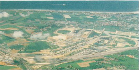 Из-за наличия на французской стороне большого свободного пространства обслуживание подвижного состава, курсирующего через Евротоннель, сосредоточили в основном там. Поэтому площадь французского терминала в городе Кокель составляет целых 480 га, а вместе с подъездными путями – 700 га (рис. 2). Во время его создания это была самая большая строительная площадка в Европе. При строительстве фундаментов его зданий и других подземных частей было вынуто 12 млн куб. м грунта, а также были выполнены обширные работы по упрочнению грунтов и дренажу. В нескольких сотнях метров от этого места в пределах зоны безопасности терминала расположили и французский портал тоннеля под названием «Бёссинг», для чего пришлось создать постепенно углубляющуюся искусственную выемку объемом 2 млн куб. м (рис. 3). Напомним, что французский портал находится в 3,3 км от берега пролива.
