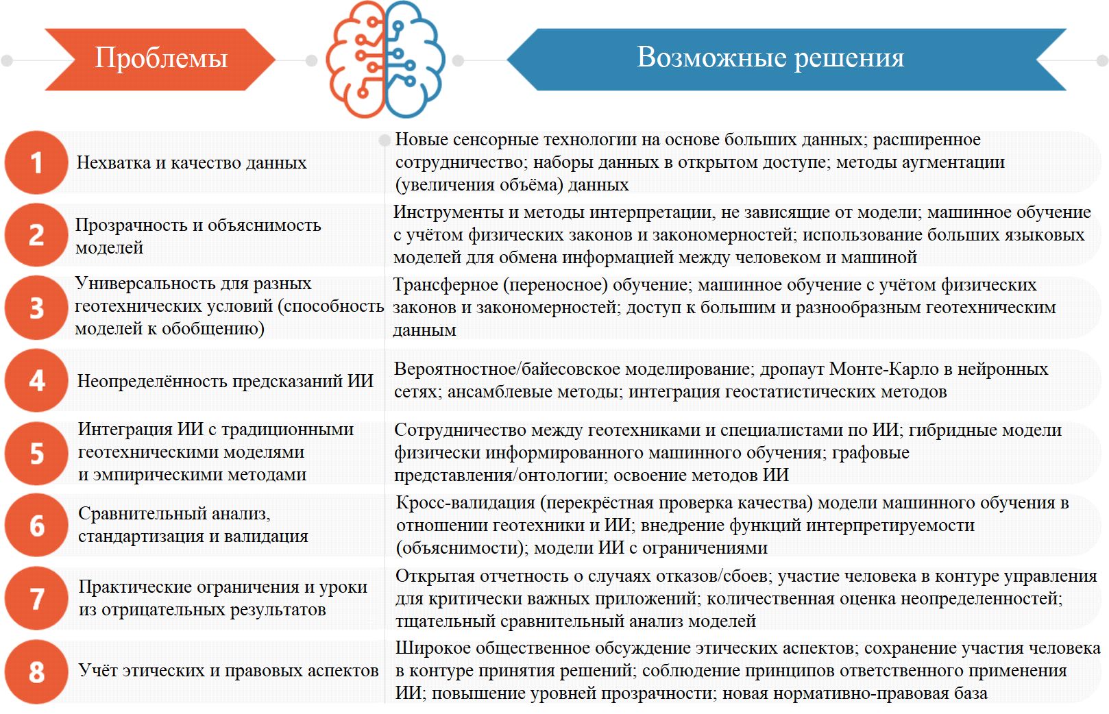 Рис. 6. Основные проблемы применения искусственного интеллекта в геотехнике и их возможные решения