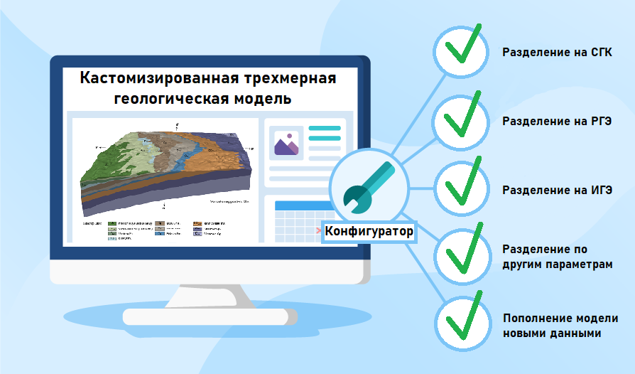 Рис. 2. Возможности кастомизированной трехмерной модели геологической среды