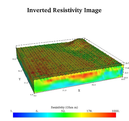 Рис. 4. Пример трехмерной инверсии удельного электрического сопротивления по результатам электротомографии
