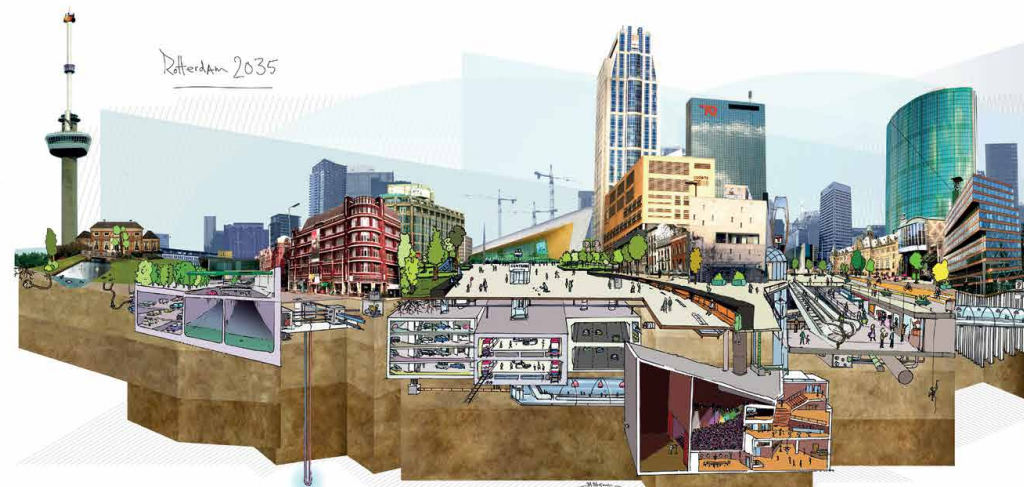Рис. 5. Фрагменты иллюстрации «Город Роттердам в 2035 году – другая половина Роттердама. Мудрое использование недр дает градостроительству новое направление для развития» (Источник: Gemeente Rotterdam (Официальный сайт города Роттердам)