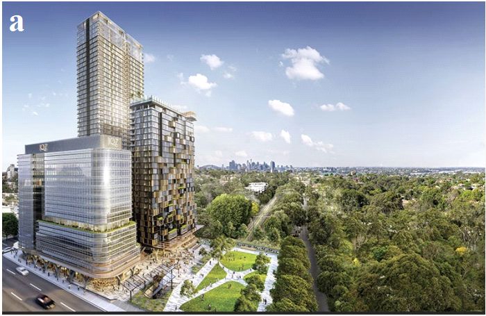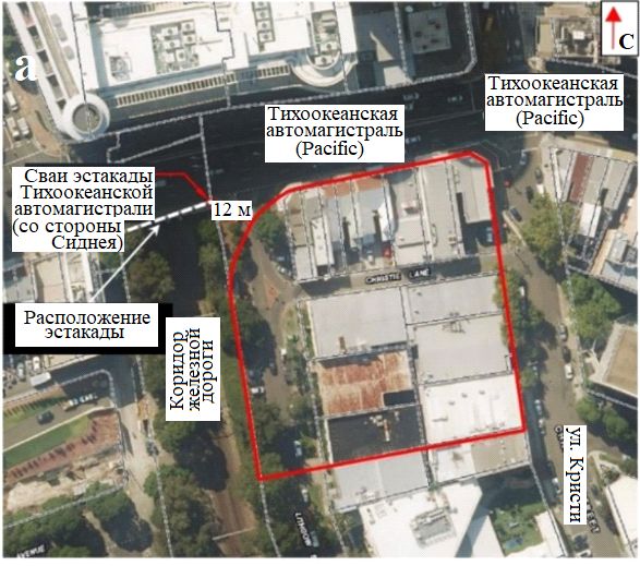 Речь идет о проекте строительства комплекса зданий на улице Кристи (д. 88) в городе Сент-Леонардс, являющемся пригородом Сиднея (рис. 1). Этот комплекс состоит из двух жилых высотных зданий с максимальной высотой 47 этажей и одного коммерческого здания с 15-ю надземными и 10-ю подземными этажами до глубины 43 м (для обширных торговых площадей). Подземная часть площадью в плане 8 тыс. кв. м расположена рядом с основной инфраструктурой автомобильной и железной дорог, простираясь почти до границы с пригородной пассажирской железнодорожной сетью Сиднея (Sydney Trains) (рис. 2).