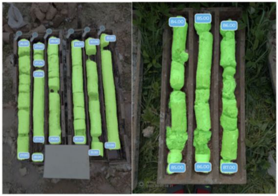 В связи с тем, что фотофиксация до сих пор слабо поддаётся стандартизации даже внутри одной организации, набор данных был сформирован с учётом различных условий освещения, устройств съёмки, экспозиции, углов наклона и типов керновых ящиков.Это позволило оценить универсальность модели и адаптировать её к разнообразию условий получения данных по фотоматериалам инженерно-геологических изысканий.