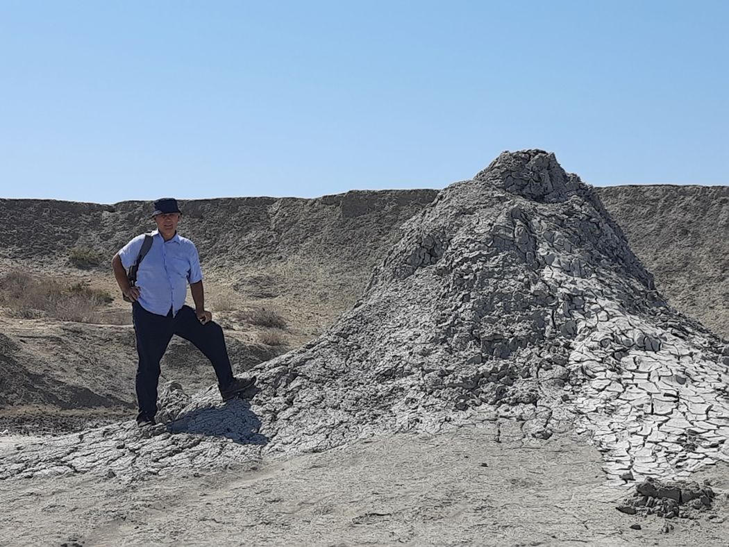 Рис. 1. Грифон высотой 2,5 м в кальдере грязевого вулкана Бахар (Республика Азербайджан). Фото автора. 2022 г.