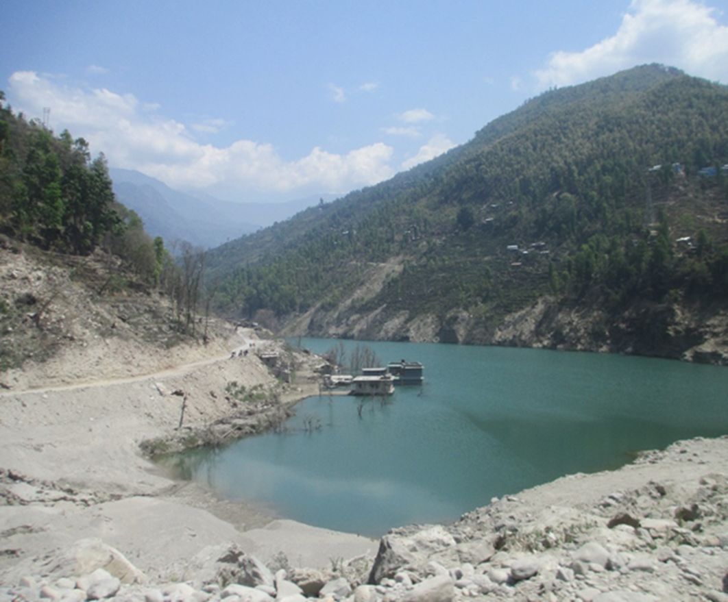 Рис. 2. Завальное озеро в 60 км к северо-востоку от Катманду (Непал). Образовалось 2 августа 2015 г. в результате перекрытия долины р. Санкоши грандиозным оползнем объемом около 50 млн. м3. Фото автора. 2016 г.