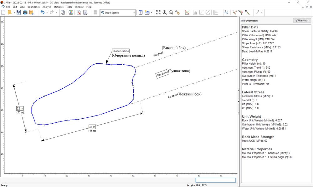 Рис. 2. Пример разреза (геометрии) целика в программе CPillar (по [5])