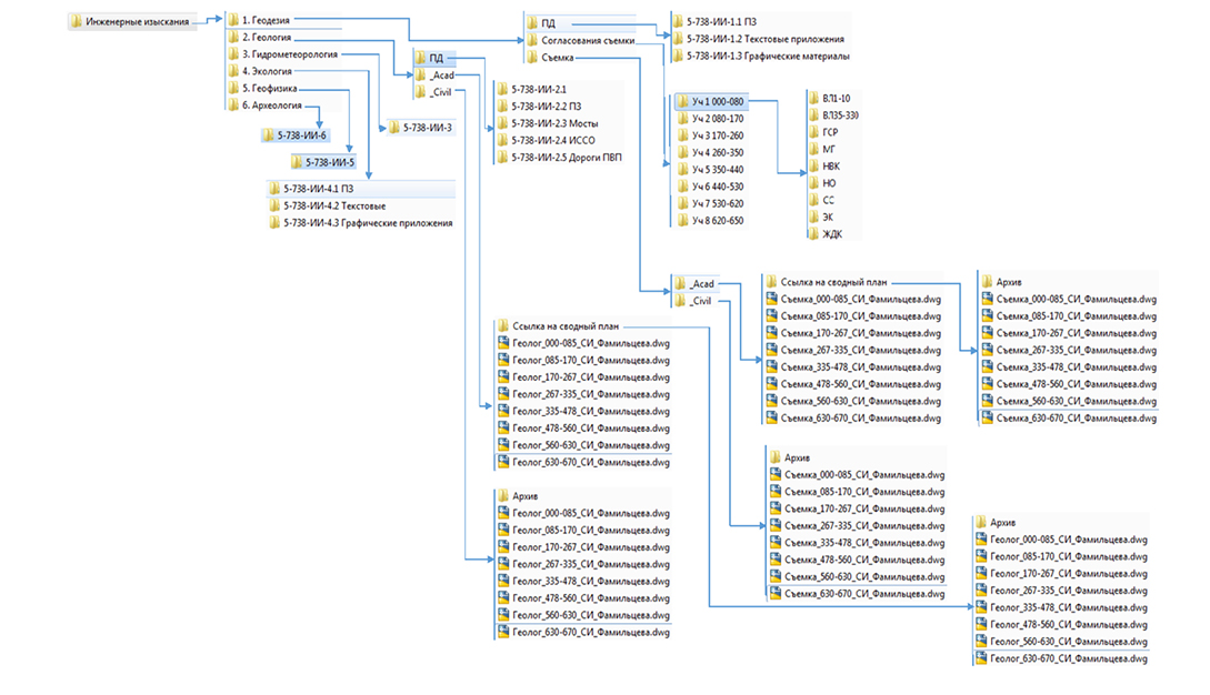 Рис. 1. Схема организации папок в инженерных изысканиях