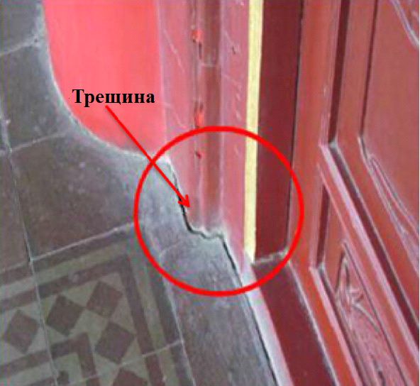 Рис. 2. Одна из трещин, обнаруженных внутри Колокольной башни