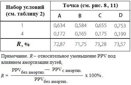 Таблица 7. Сопоставление PPV (мм/с) для наборов условий 1 (без амортизации) и 4 (с амортизацией)