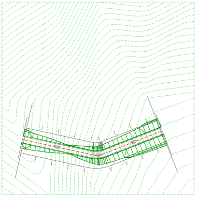 Для создания поперечных сечений нужно выполнить еще одно подготовительное действие – создать в OpenRoads Designer трехмерные тела выемки/насыпи между существующим рельефом и верхней поверхностью коридора.